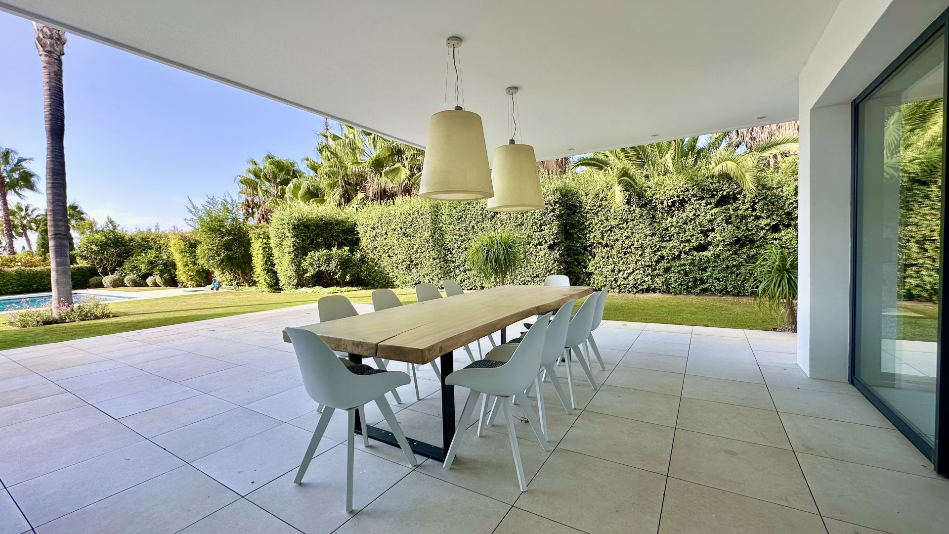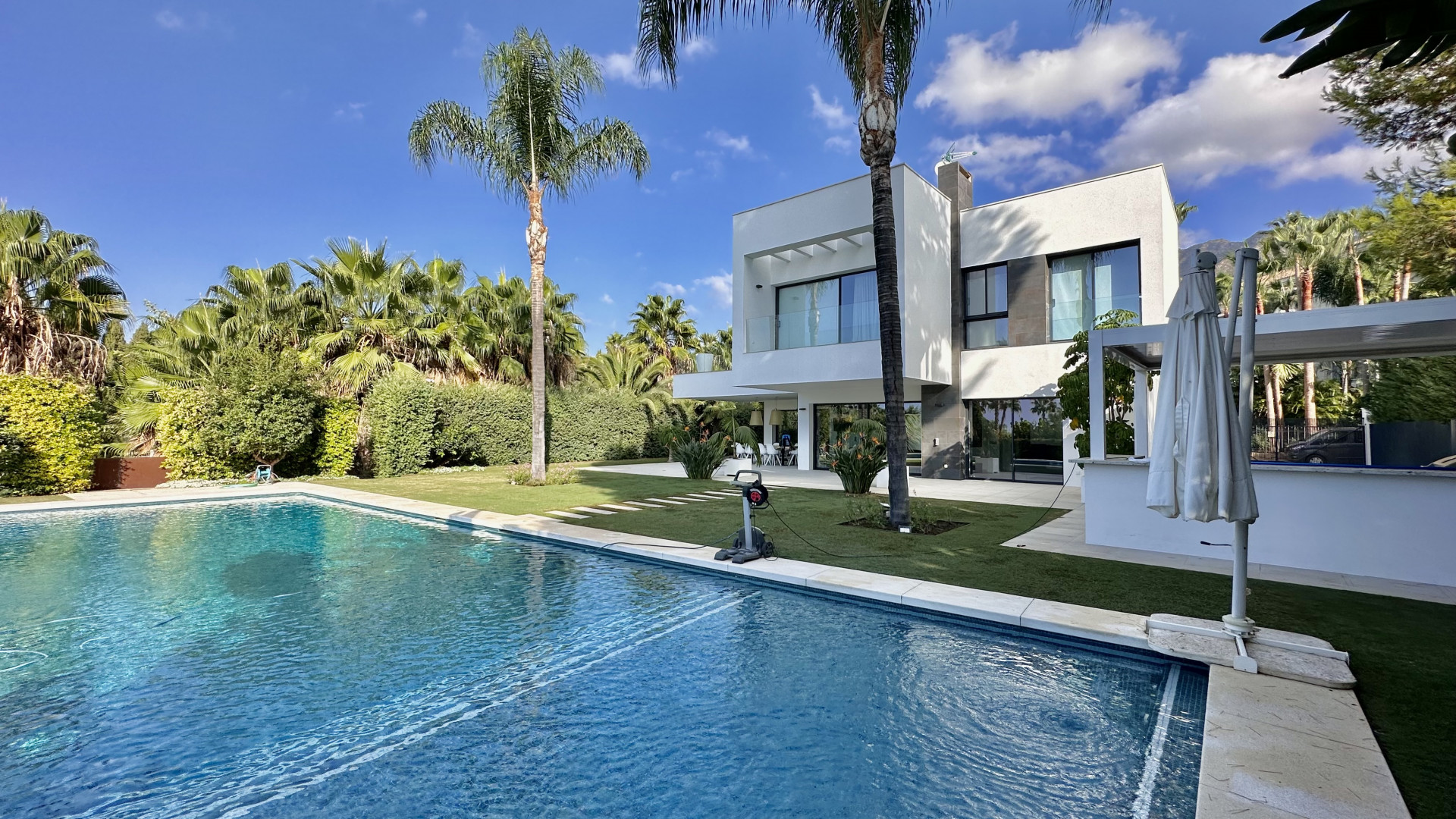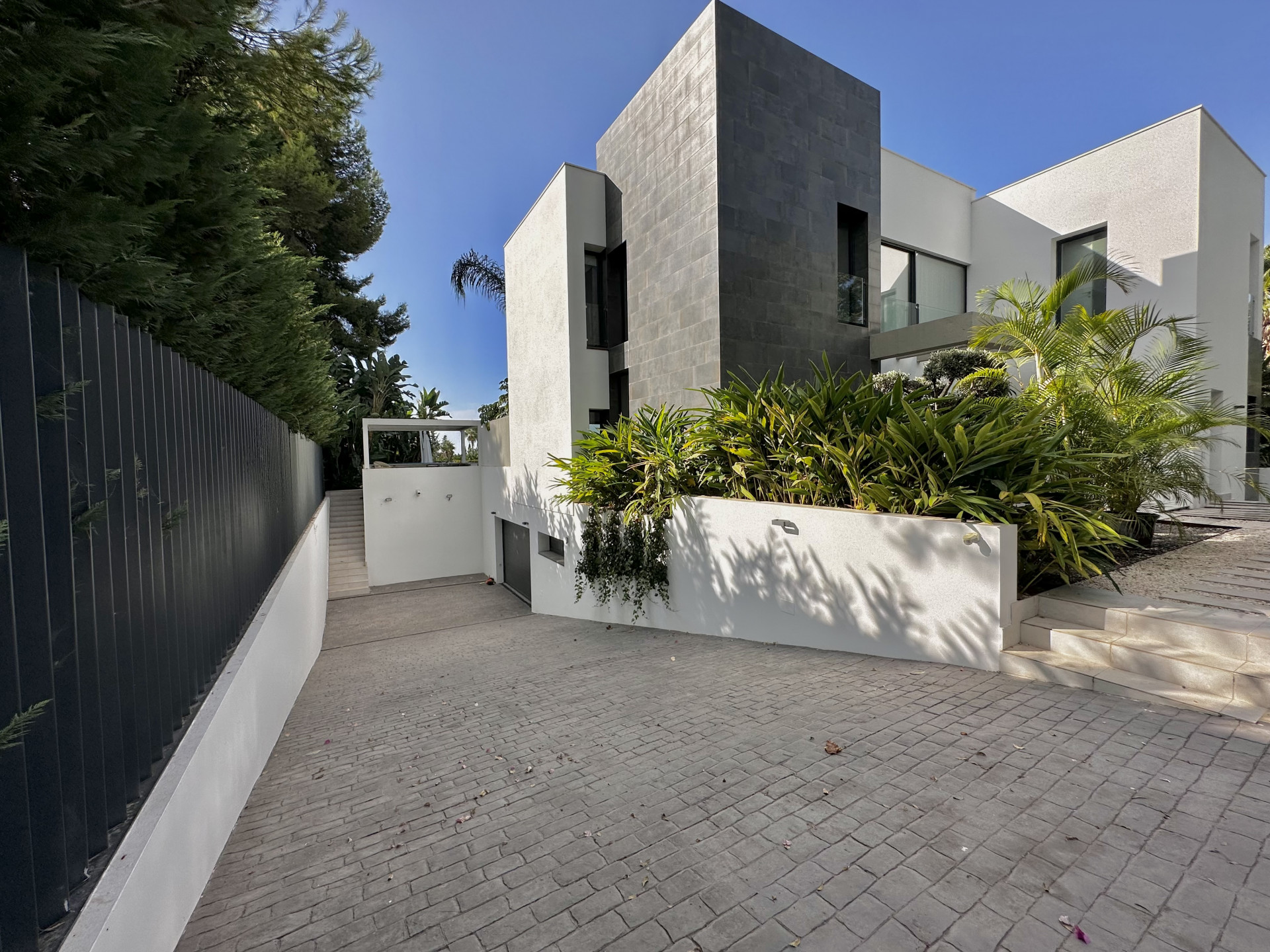 A modern and spacious villa is situated in a very private street in Nagueles area of the prestigious Golden Mile Marbella, very good connected with A-7 highway and just within short drive distance to the beach, the most famous hotels Puente Romano and Marbella club, the centre of Marbella village and all facilities.